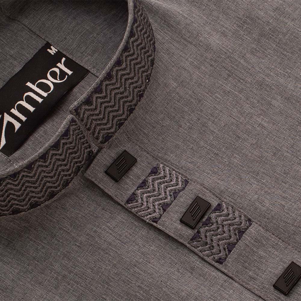 Intricate embroidery on the collar and cuffs, finished with contrast maroon-toned borders for a touch of sophistication. Elegant metallic buttons with logo engraving add luxury to the overall look.