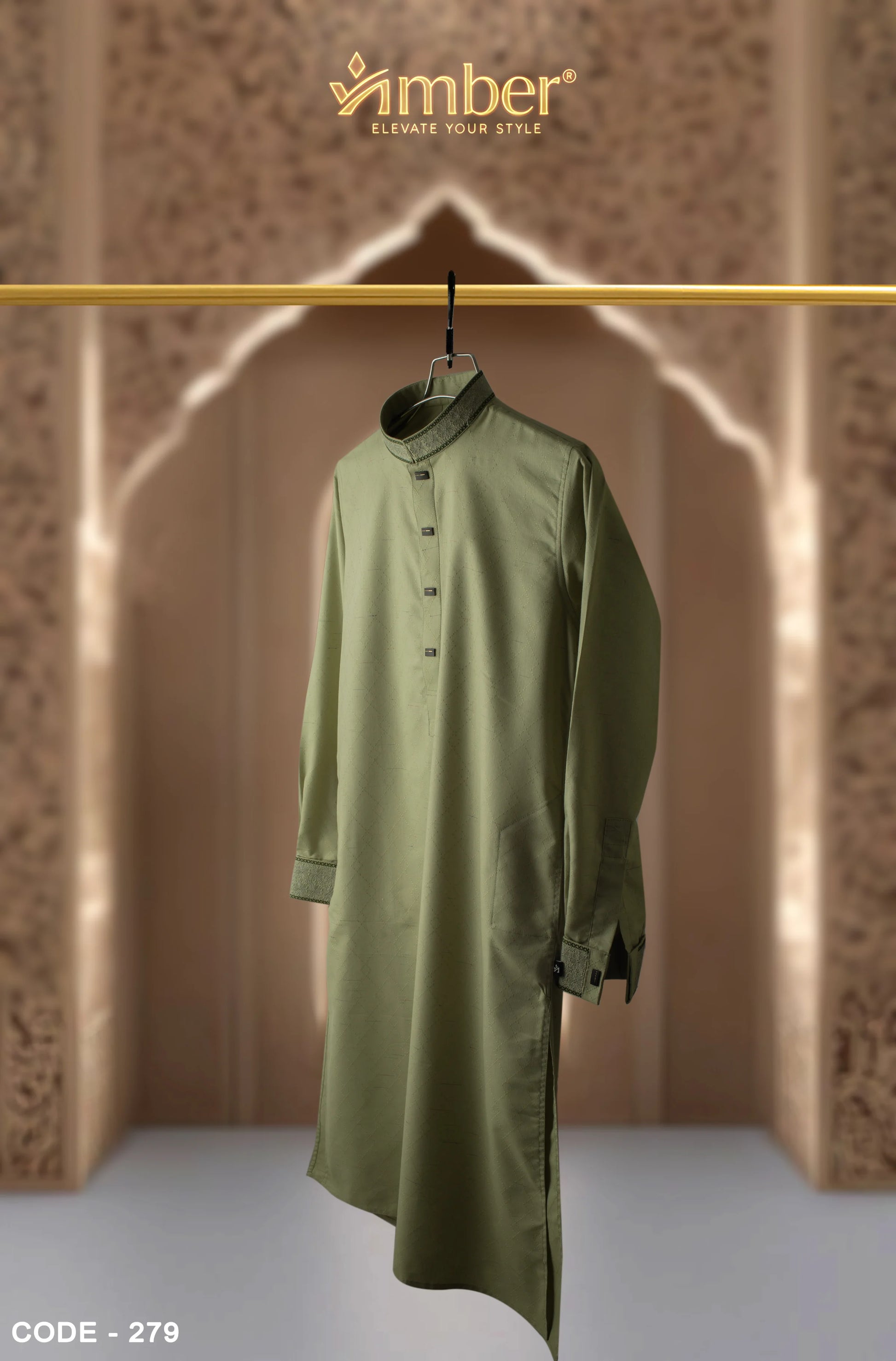Keep your AMBER Panjabi in a cool, dry place. Use a breathable garment bag to protect it from dust. Avoid folding it in ways that might create hard creases.