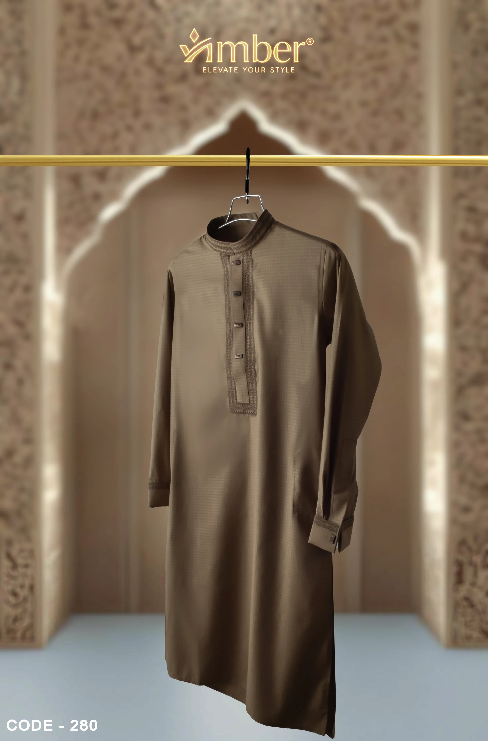 For best results, dry clean or gently hand wash your AMBER Panjabi using cold water and a mild detergent. This helps maintain the rich color and soft fabric texture.