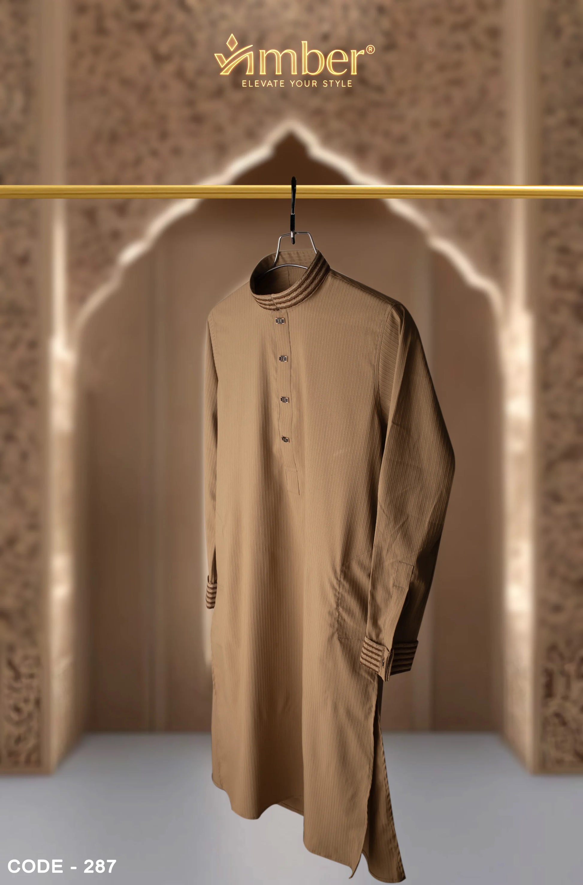 For best results, dry clean or gently hand wash your AMBER Panjabi using cold water and a mild detergent. This helps maintain the rich color and soft fabric texture.
