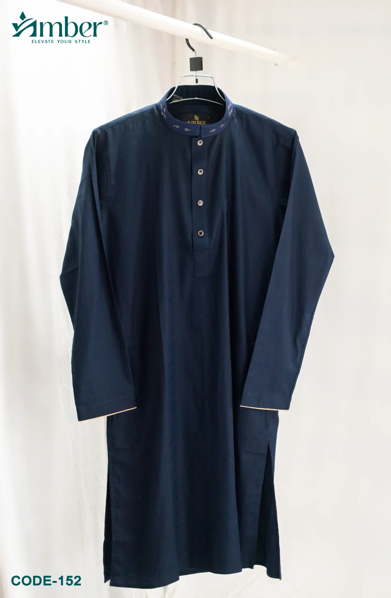 Keep your AMBER Panjabi in a cool, dry place. Use a breathable garment bag to protect it from dust. Avoid folding it in ways that might create hard creases.