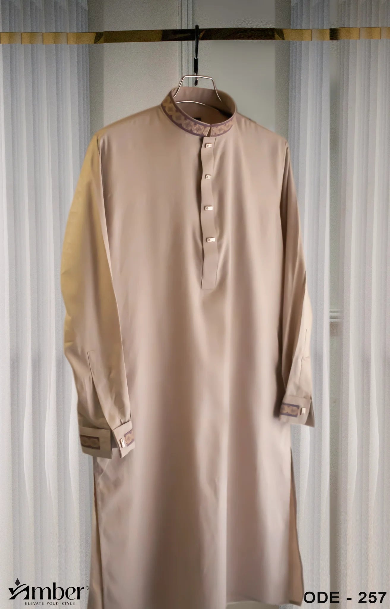 For best results, dry clean or gently hand wash your AMBER Panjabi using cold water and a mild detergent. This helps maintain the rich color and soft fabric texture.